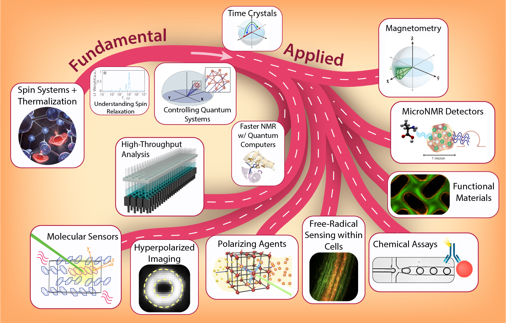 We are reimagining magnetic resonance spectroscopy—nuclear magnetic resonance (NMR) and electron paramagnetic resonance (EPR)—as tools for discovery at the intersection of chemistry, physics, and biology. The quantum spins that underpin these techniques hold untapped potential for sensing and measurement.